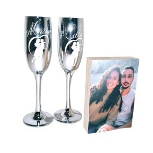 מארז הצעת נישואין זוג כוסות שמפניה ופוטובלוק