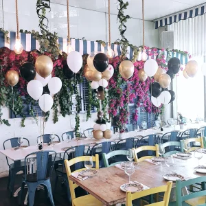 מרכזי שולחן מבלונים בסגנון מיקונוס עין הרע יווני