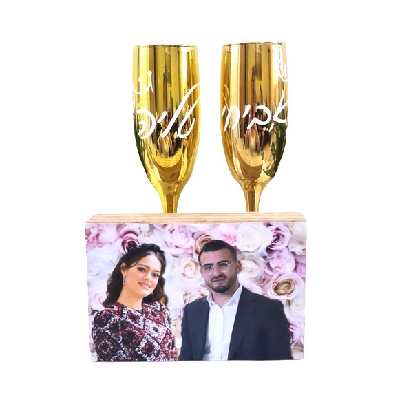 מארז הצעת נישואין זוג כוסות שמפניה ופוטובלוק